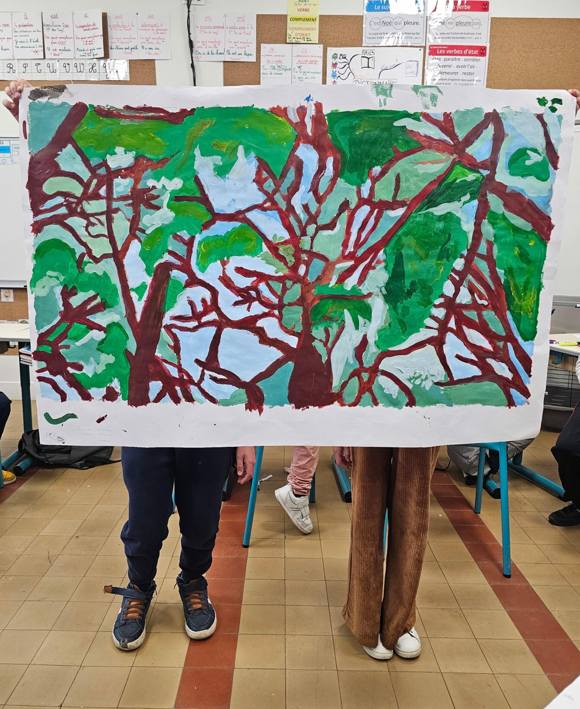 Ce projet est né d’un atelier mené en forêt avec une classe de CM1 de l’école de Boeschepe en 2025. L’intention était d’associer l’image en mouvement et la pratique picturale dans un même geste collectif.