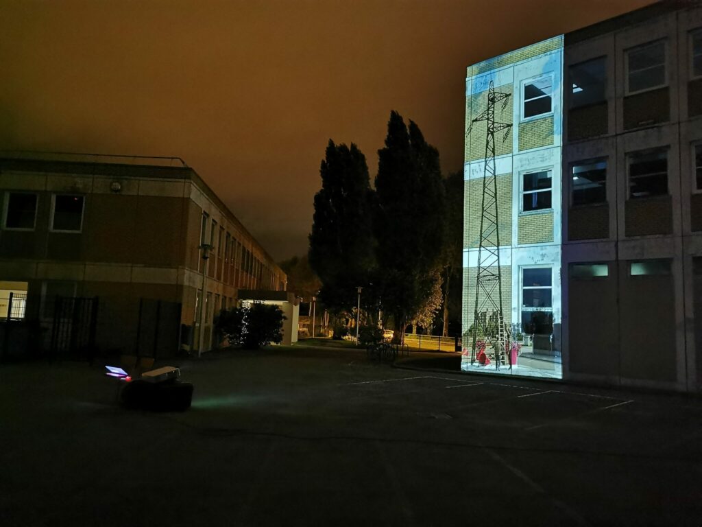 Saisis par l’omniprésence des lignes électriques traversant le quartier en direction de l’Usine des dunes, ils ont souhaité mobiliser la forme des pylônes et l’esthétique des lignes comme prétexte à la documentation de la vie du quartier et de son histoire. Les cartographies historiques témoignent de la présence des lignes électriques avant le développement du quartier dans les années 50 et 60, à une époque où ce territoire était encore couvert de champs. Les habitations, maisons, immeubles, établissements divers se sont donc construits autour de ces pylônes électriques. Et les habitant.es sont arrivés dans un paysage de lignes.