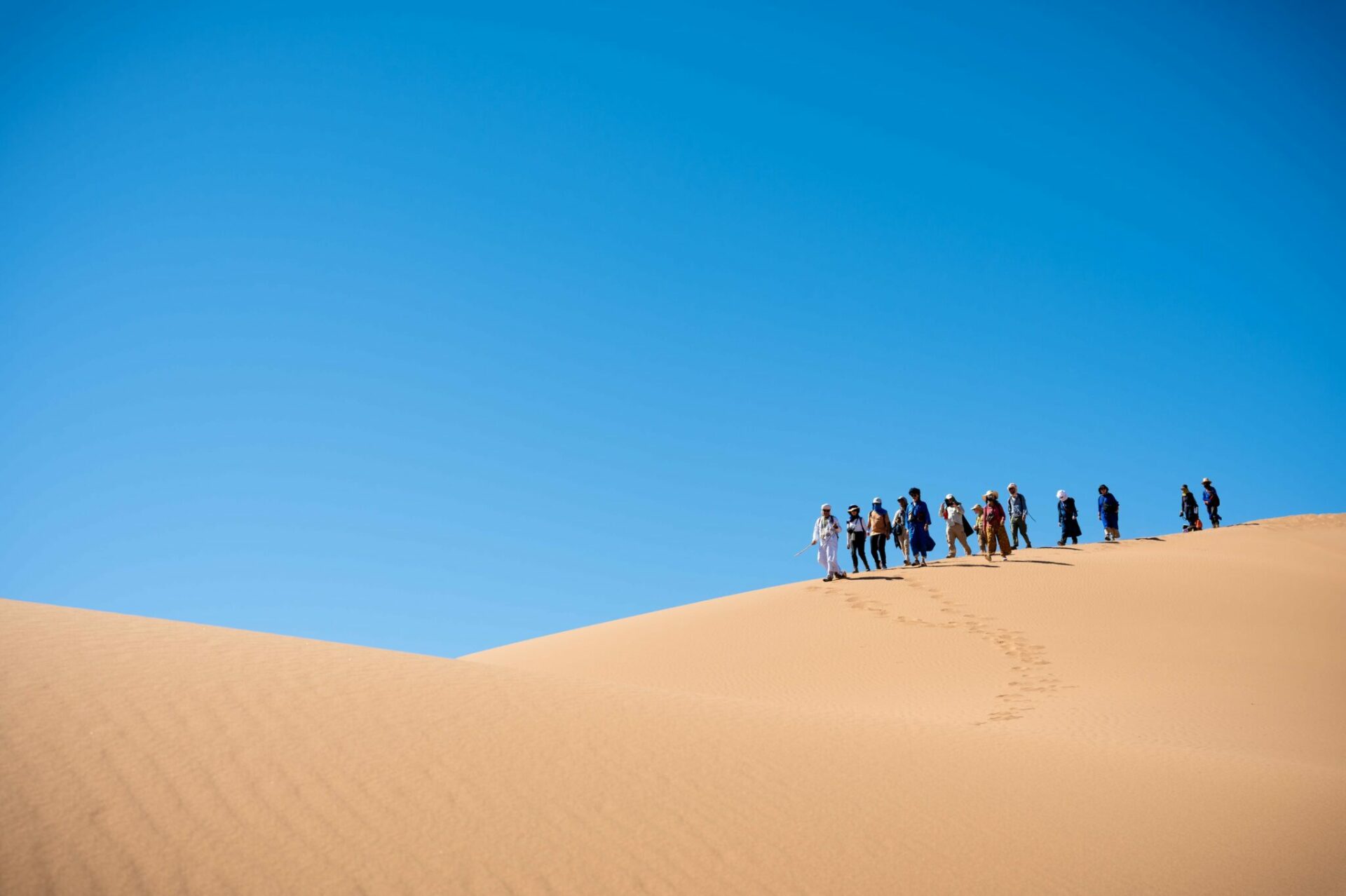 Cette aventure, organisée par l’Institut français du Maroc et ses partenaires, a relevé plusieurs enjeux culturels, environnementaux et sociaux. Inspirée par les caravanes d’autrefois, Kafila a réactivé les chemins de migrations ancestrales, d’échanges commerciaux et de parcours historiques des savoirs et des cultures, contribuant ainsi à la valorisation d’un territoire unique. La région de Drâa, riche en patrimoine matériel et immatériel, a été le théâtre de notre exploration, de la vallée du Draâ aux sommets de l’Anti-Atlas.