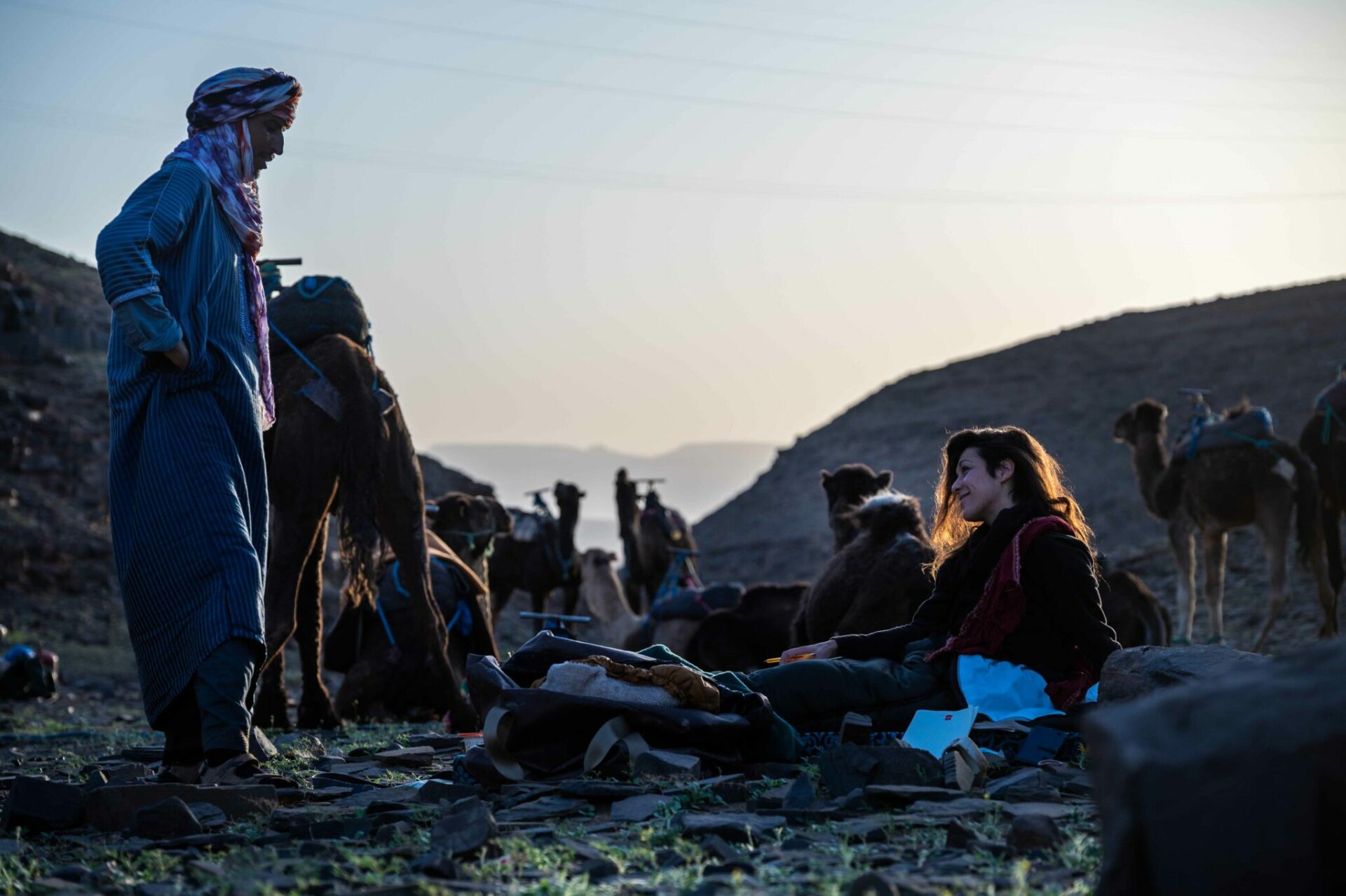 La caravane, composée de dromadaires et de douze artistes français et marocains, s’est déplacée de « porte en porte » à travers six grandes étapes, de M’Hamid El Ghizlane à Ouarzazate. En résidence de création et de recherche, nous avons été immergés dans un lieu de vie itinérant, capturant à travers nos œuvres les paysages, les rencontres, les discussions et les émotions de ce voyage unique.