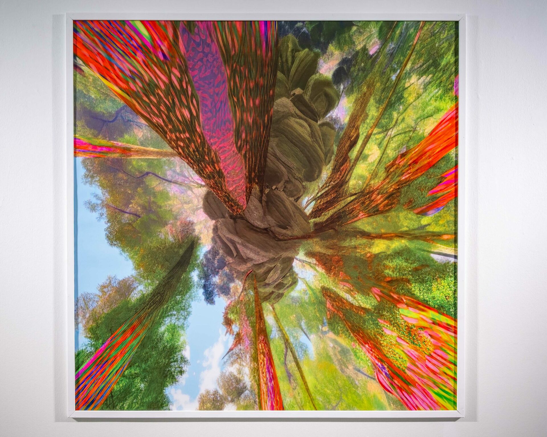 originales utilisées, tout en dévoilant une esthétique totalement nouvelle. Ce paysage onirique et luxuriant, à cheval entre la peinture et le jeu vidéo, interroge les nouveaux rapports à l’image à l’heure de l’intelligence artificielle.